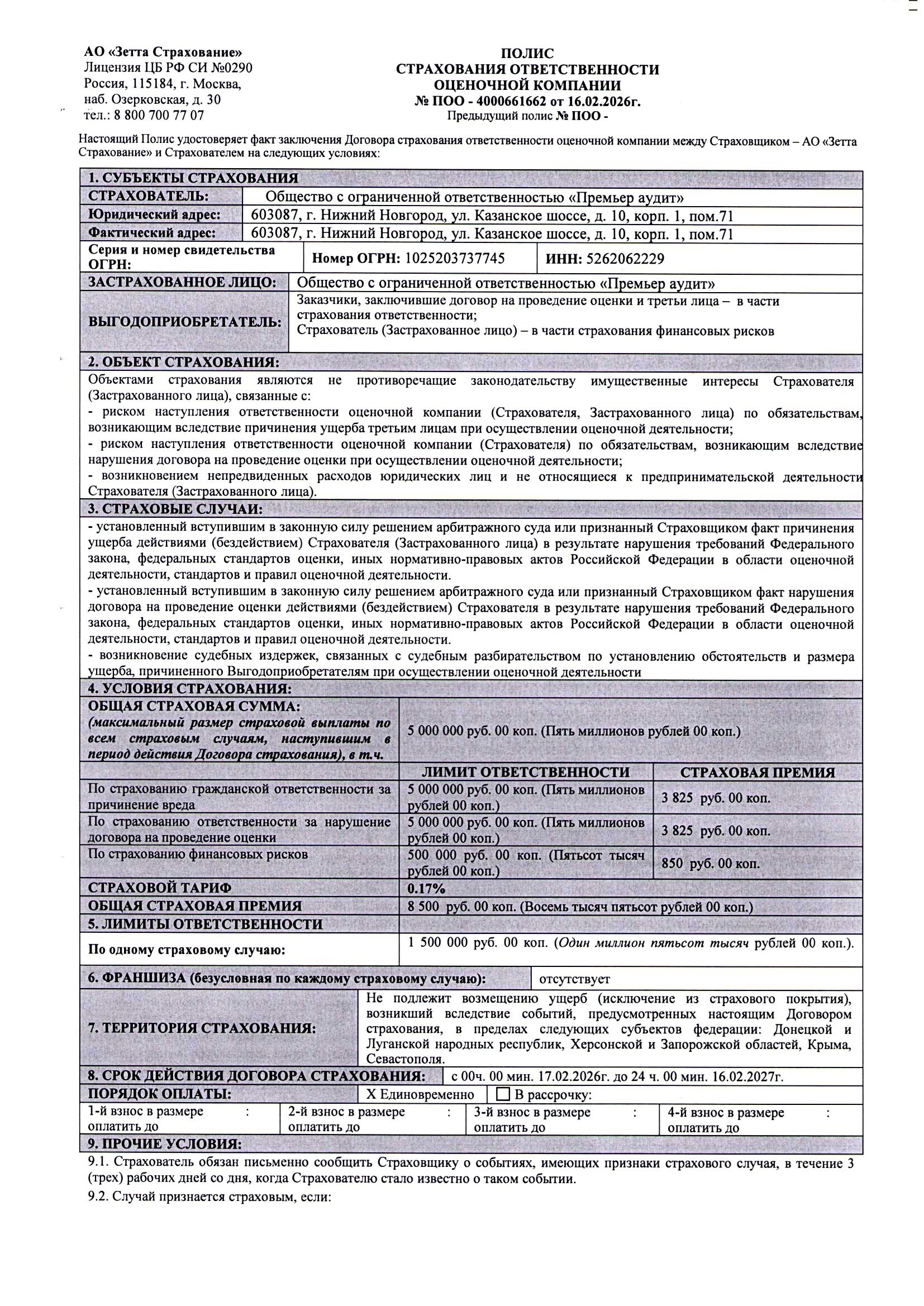 Страховой полис (Аудит) стр.1