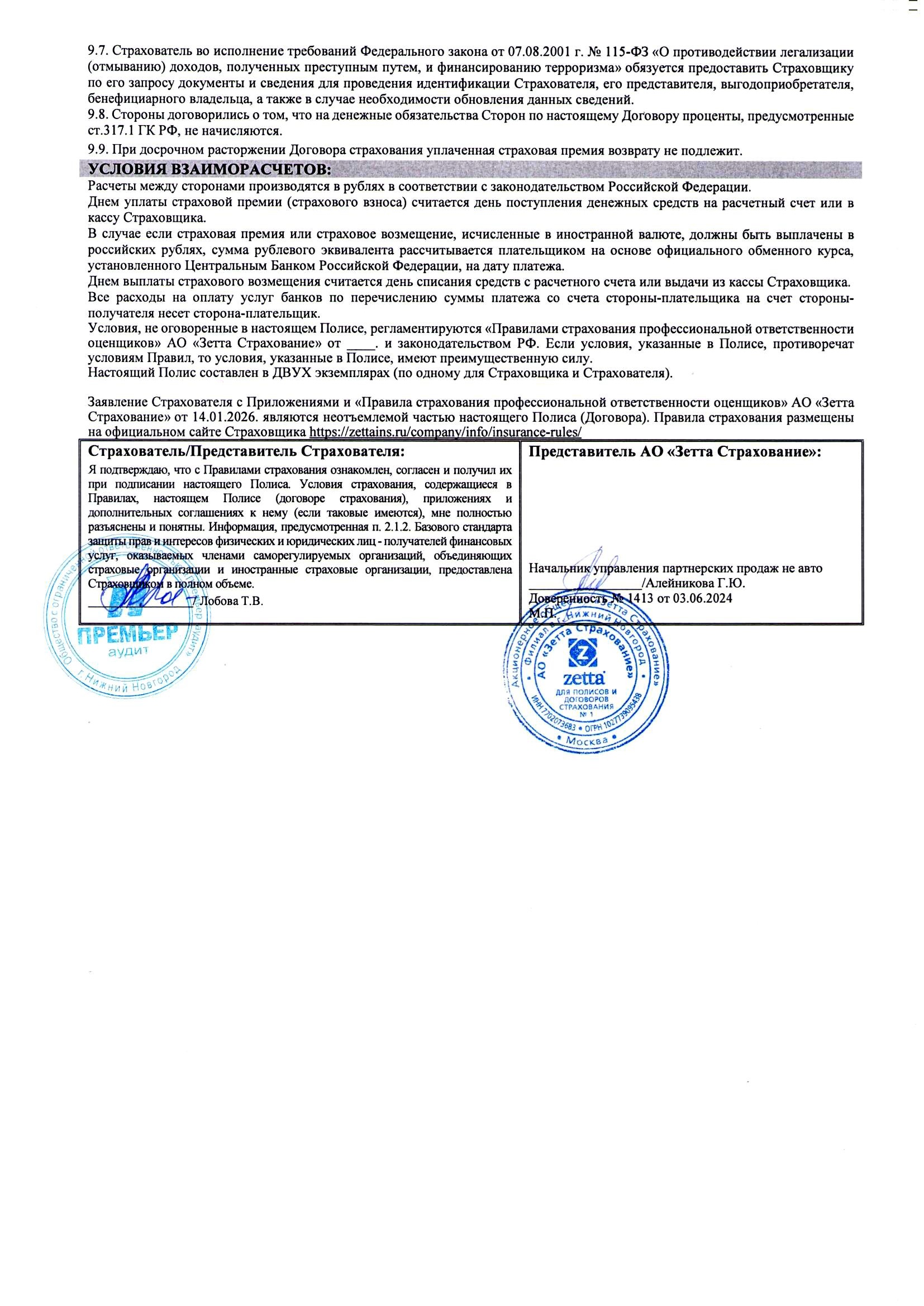 Страховой полис (Аудит) стр.2